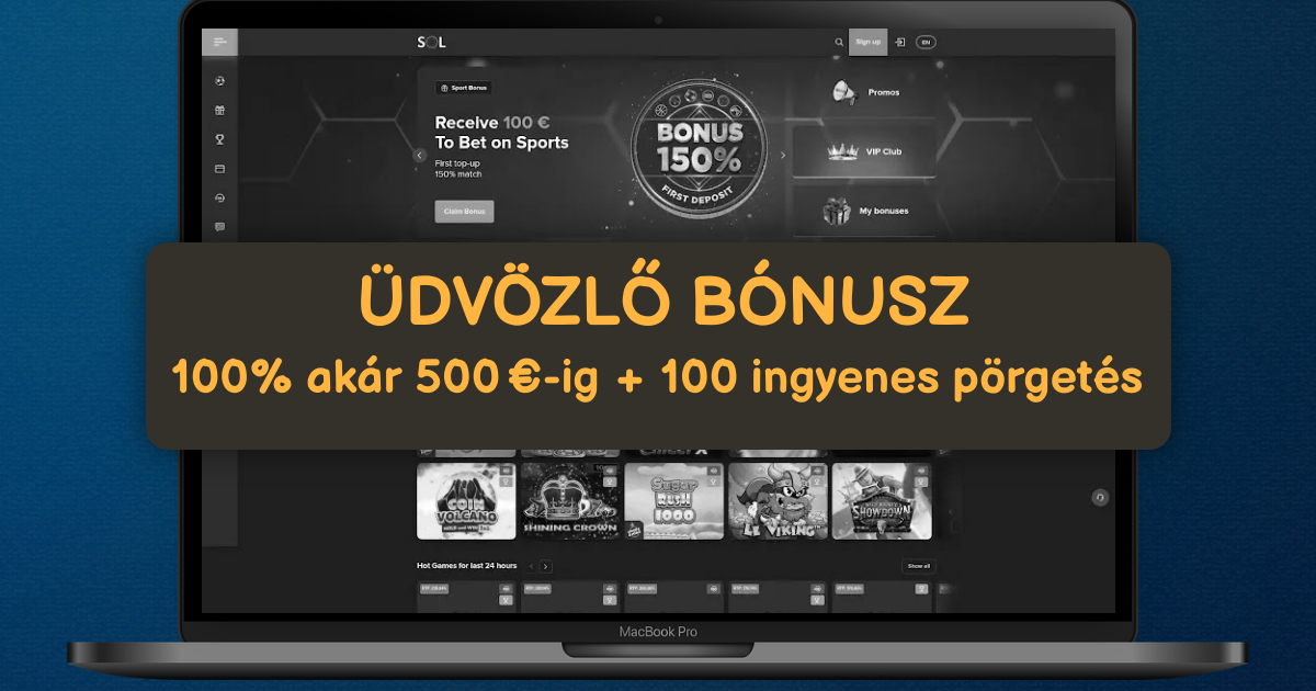 SOL Casino - Ahol a nyerés napfényes kalandja vár! Fedezze fel a játékok lenyűgöző világát, ahol több mint 2000 izgalmas slot, asztali játék és élő kaszinó játék közül választhat. Az új játékosok akár 300 eurós üdvözlő bónuszt és 50 ingyenes pörgetést kaphatnak első befizetésükkor, így azonnal megkezdhetik szerencsés útjukat. A SOL Casino büszkélkedhet villámgyors kifizetéseivel, ami azt jelenti, hogy nyereményeihez akár 24 órán belül hozzájuthat. A mobil-kompatibilis platform lehetővé teszi, hogy bárhol, bármikor játszhasson. A nonstop ügyfélszolgálat magyar nyelven is elérhető, így minden kérdésére azonnali választ kap. Csatlakozzon most a SOL Casino napfényes közösségéhez, ahol a szórakozás és a nyerési lehetőségek kéz a kézben járnak! Regisztráljon még ma, és merüljön el a szerencsejáték izgalmas világában!